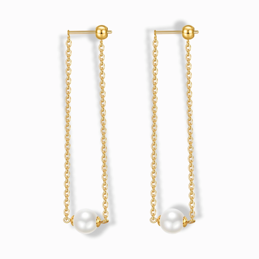 Designed for longevity, these earrings feature waterproof, hypoallergenic, and tarnish-resistant materials. The advanced PVD coating ensures they maintain their radiant glow, even with daily wear. Whether paired with an elegant dress or styled casually, these pearl chain drop earrings add a graceful touch to any outfit.