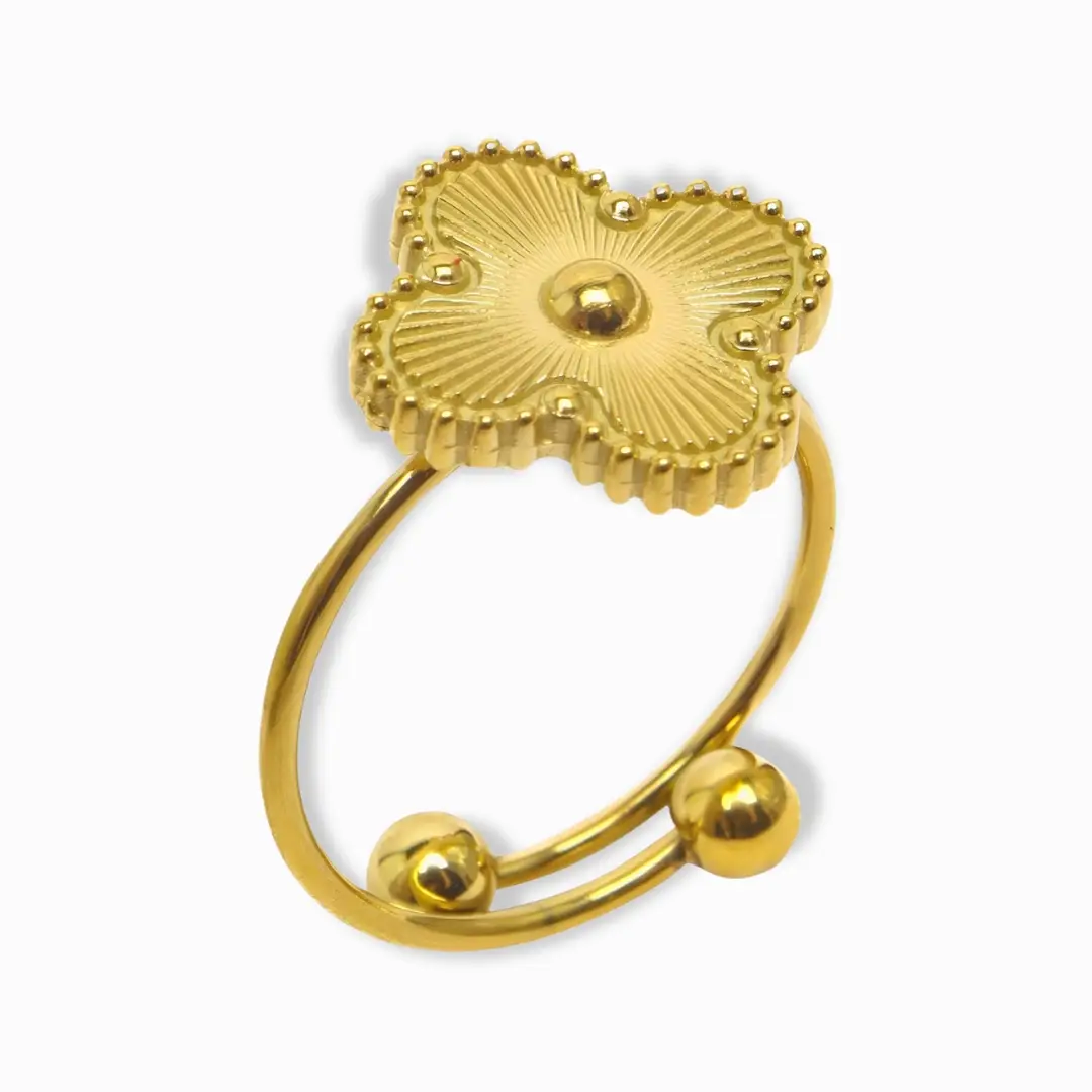 Glozya 18K Gold Plated Clover Adjustable Ring – Elegant & Versatile
